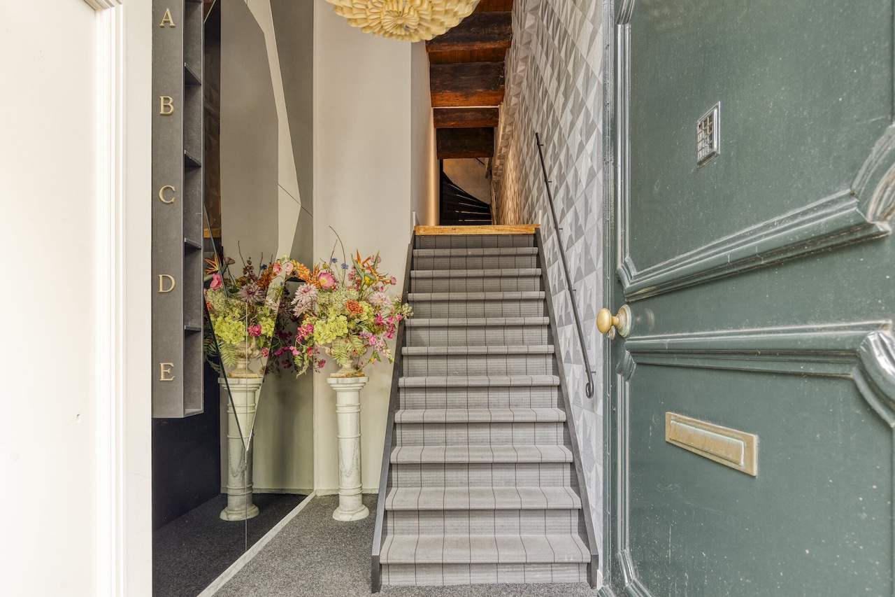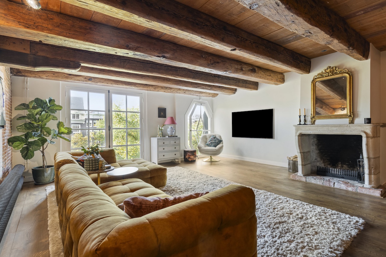 Situated on the 2nd floor of a beautifully restored national monument, this recently and meticulously renovated apartment offers a rare combination of historical character and modern comfort. The generous living room features original wooden beams, a charming fireplace, and large floor-to-ceiling windows with breathtaking views over the Keizersgracht.