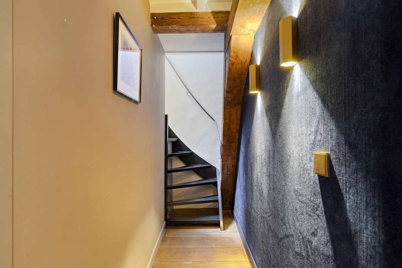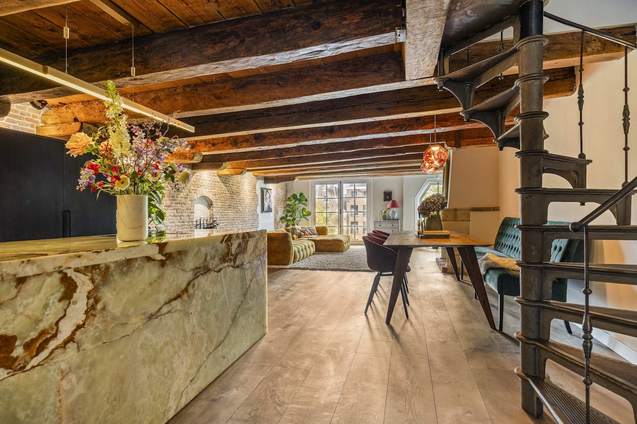 This apartment has been redesigned under architectural supervision, seamlessly blending historic Amsterdam charm with contemporary living comfort.