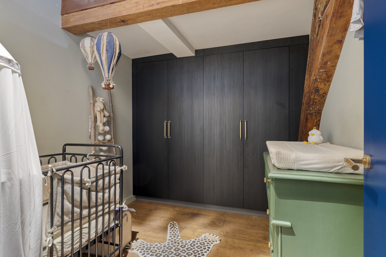 A fixed spiral staircase leads to the 3rd floor, where you will find the spacious master bedroom with built-in wardrobes and air conditioning. On this floor, there is also a second room, ideal as a guest bedroom, study, or walk-in closet.