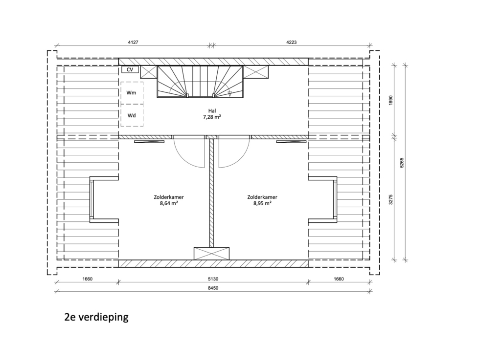 Tweede verdieping: zolderetage met cv opstelling. Deze etage is volledig geïsoleerd en voorzien van twee ruime slaapkamers
